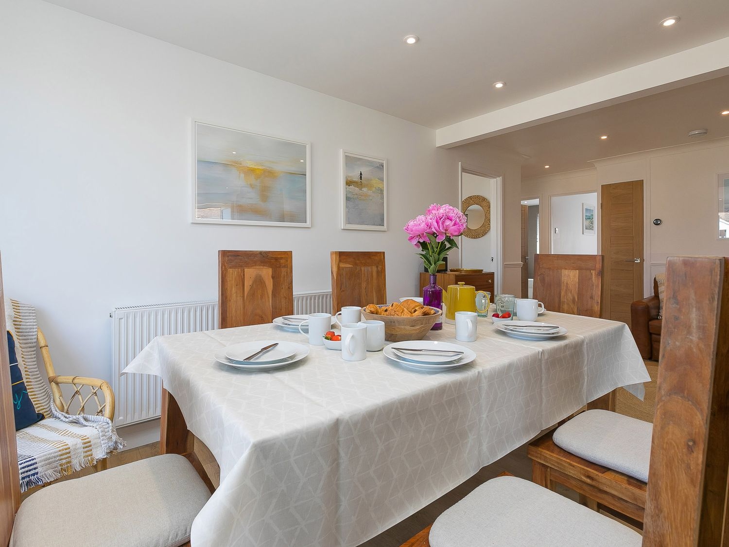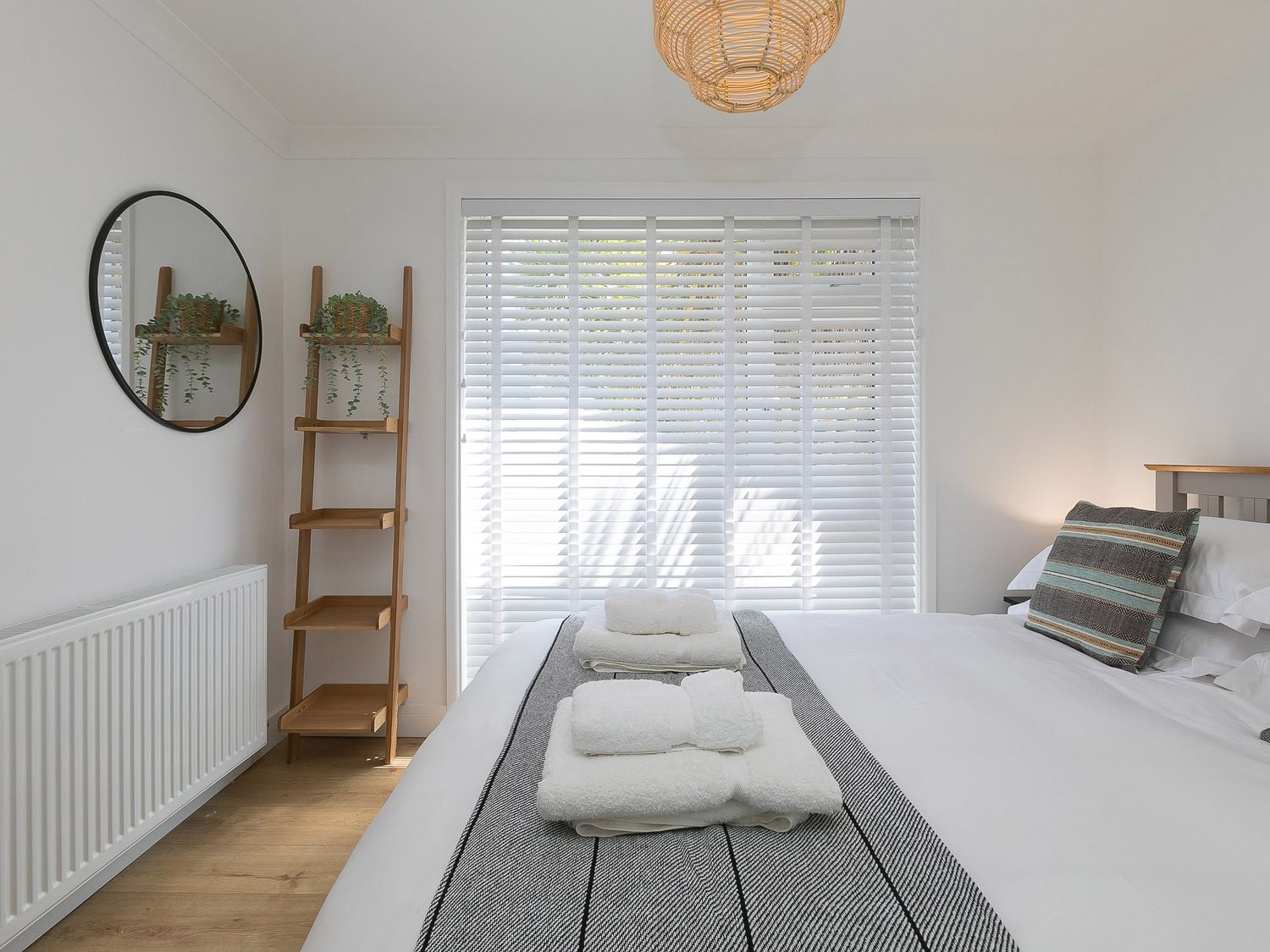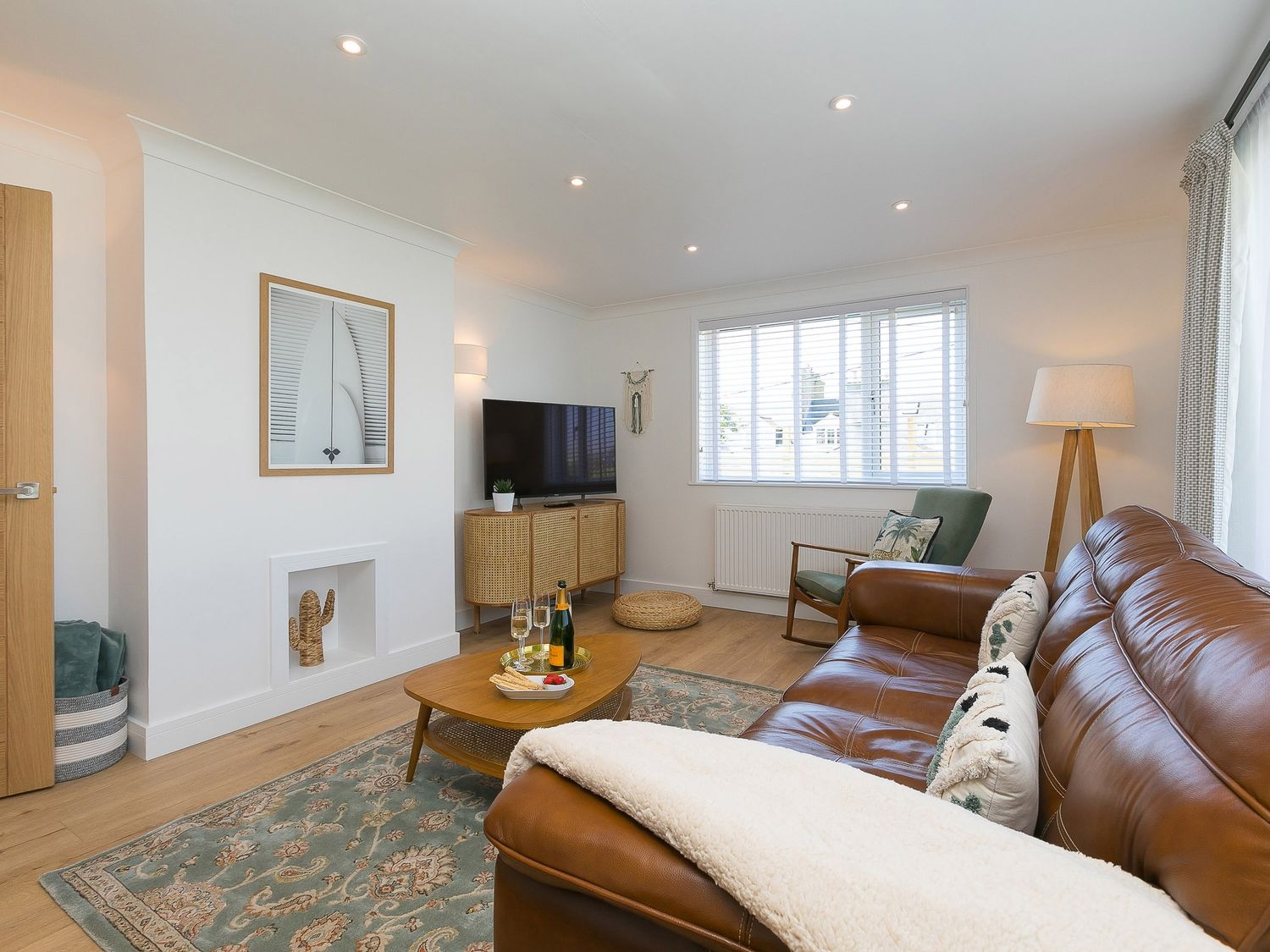 Enter into the crisp white walls of the porch on arrival, admiring the coastal hues and neutral décor and making use of the space to store shoes and coats.