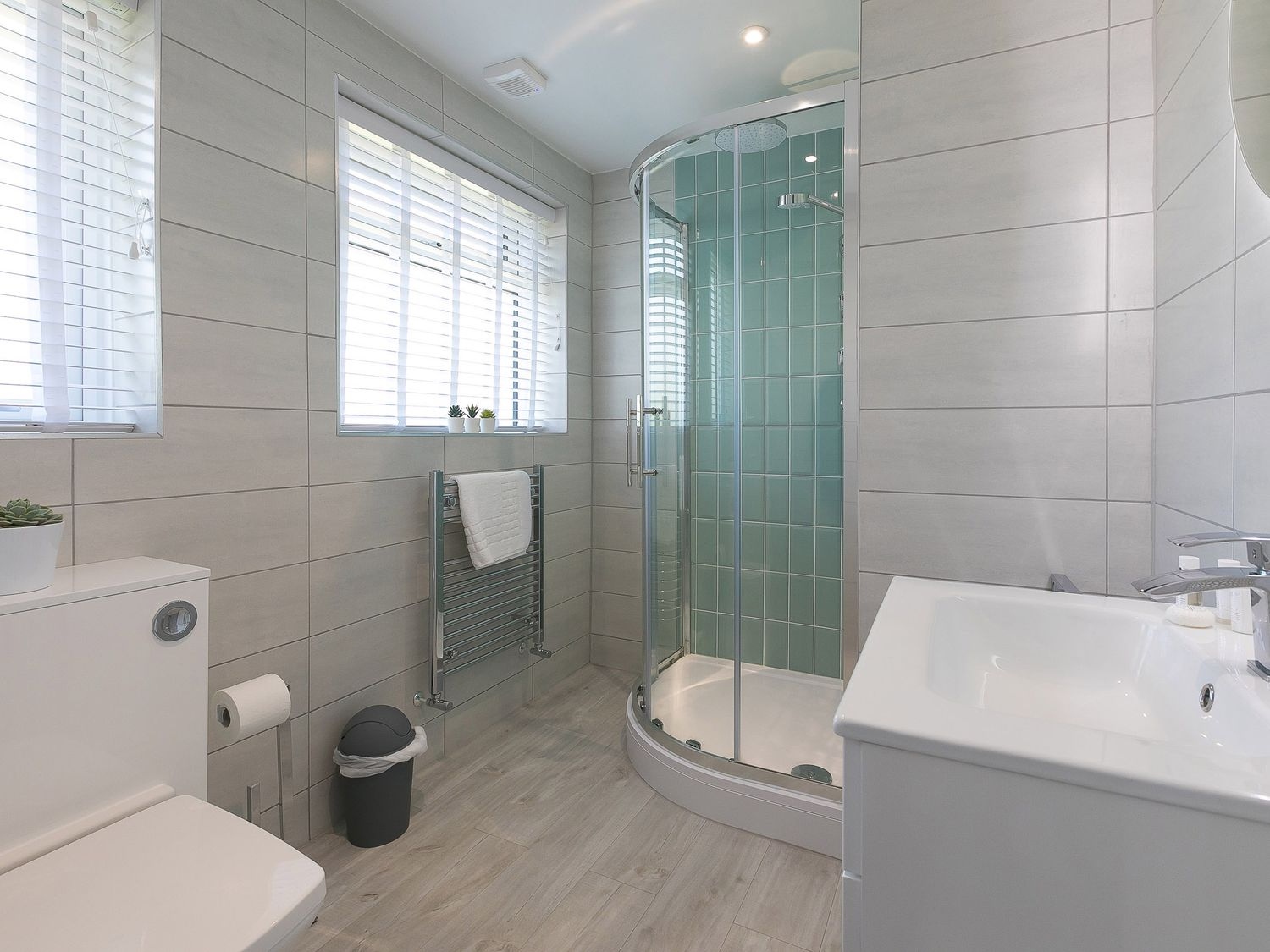 Feel refreshed with a shower or bath in the family bathroom, complete with a heated towel rail, shaver point and light-up vanity mirror.