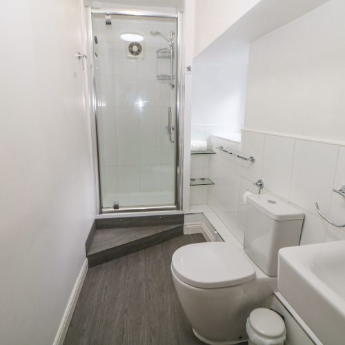 Upstairs has a spacious bedroom with king sized bed and a range of quality furnishings, including matching bedside tables with table lamps, ideal for some late night reading.