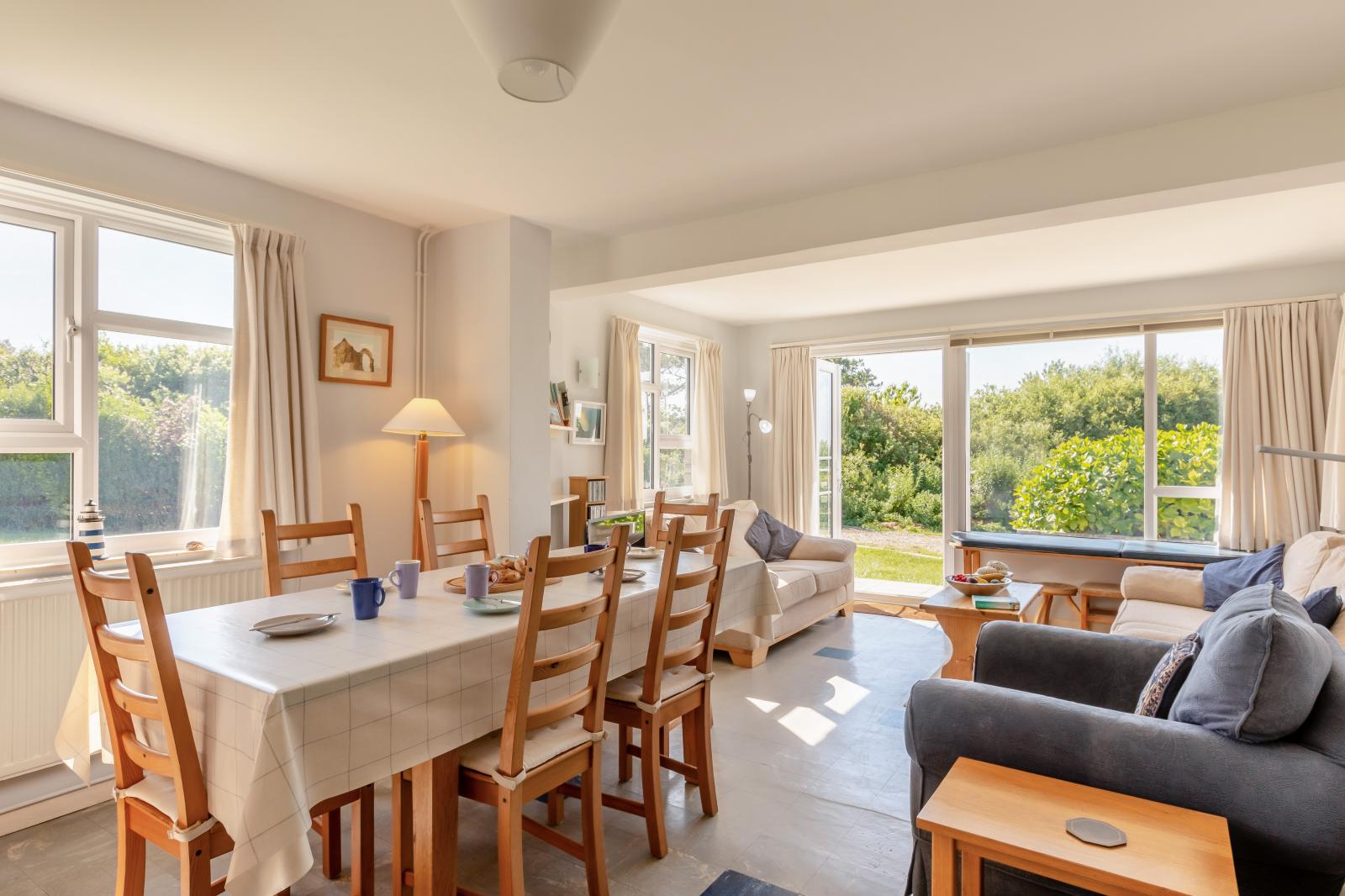 Set on one level, this beautiful, light and inviting Holiday Home enjoys magnificent sea views across the valley, making it an idyllic staycation holiday for a family seeking a quiet retreat in serene Dorsetshire countryside.