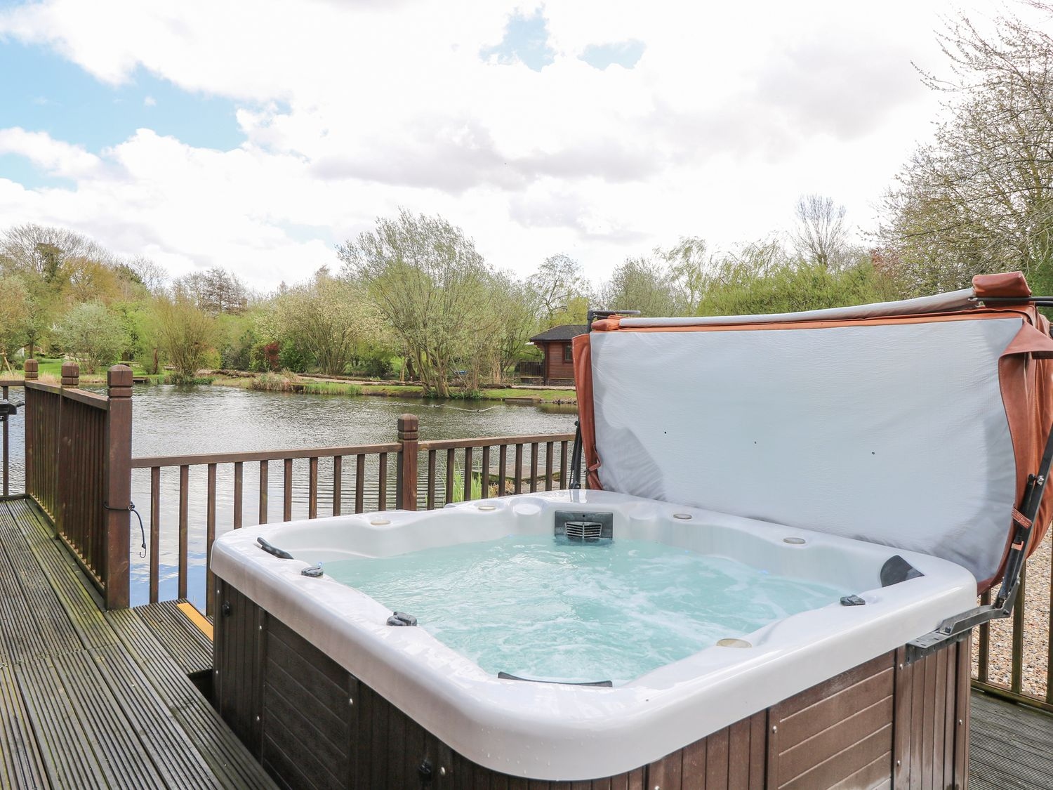 Alternatively, head outside and enjoy the pretty views as you dine alfresco over the water, making use of the gas barbecue and toasting to your holiday with a glass of fizz, the decking offers the added indulgence of a hot tub, ideal for reclining in after a long day of exploring the local area.