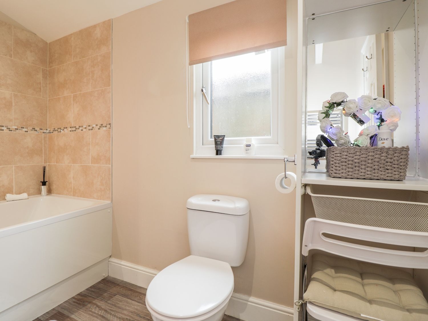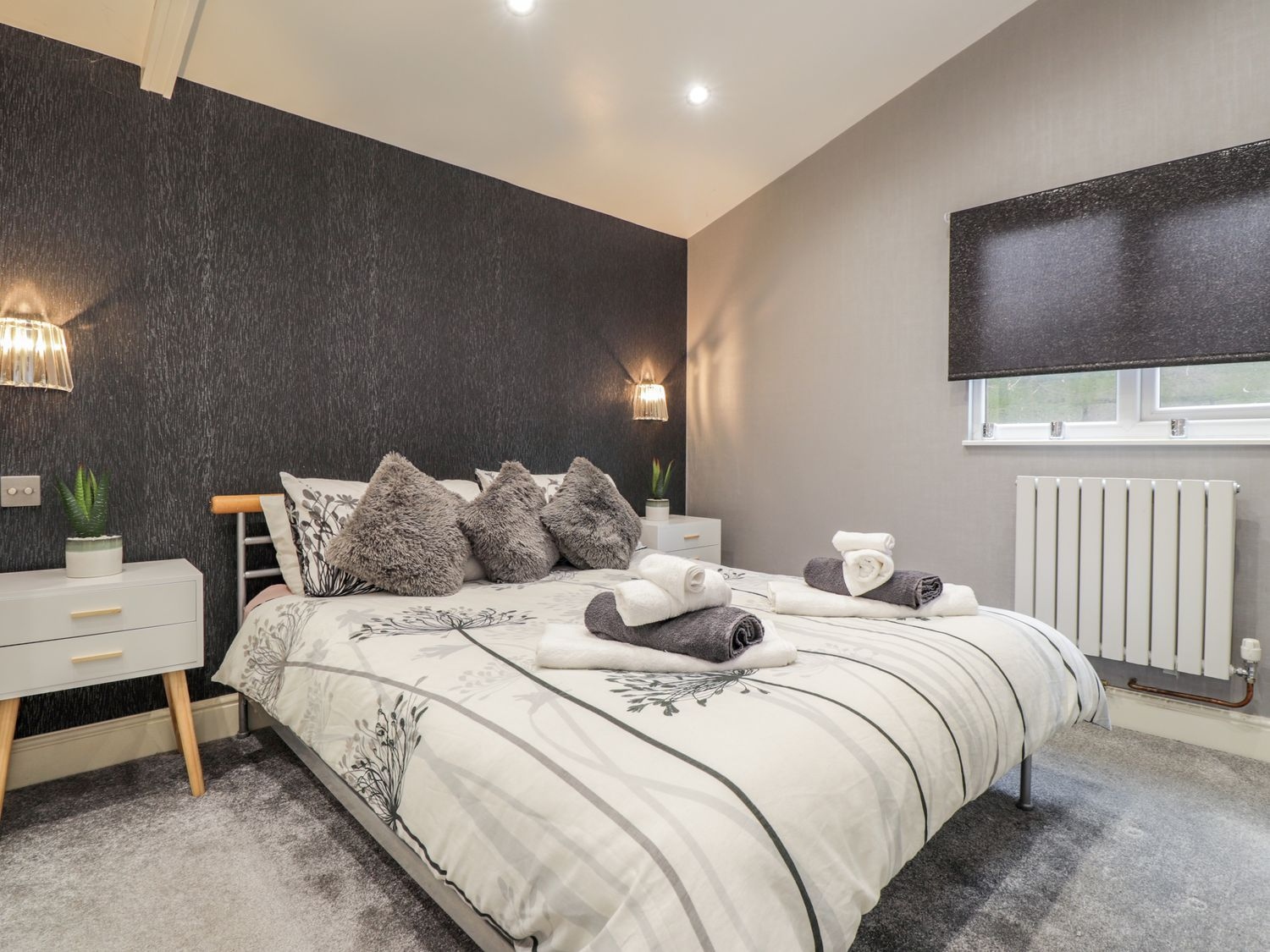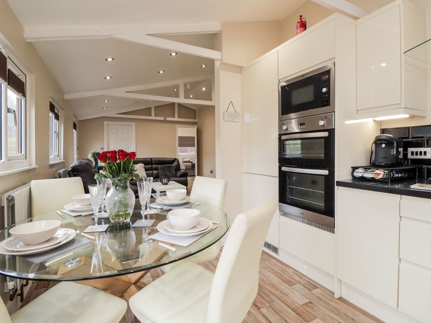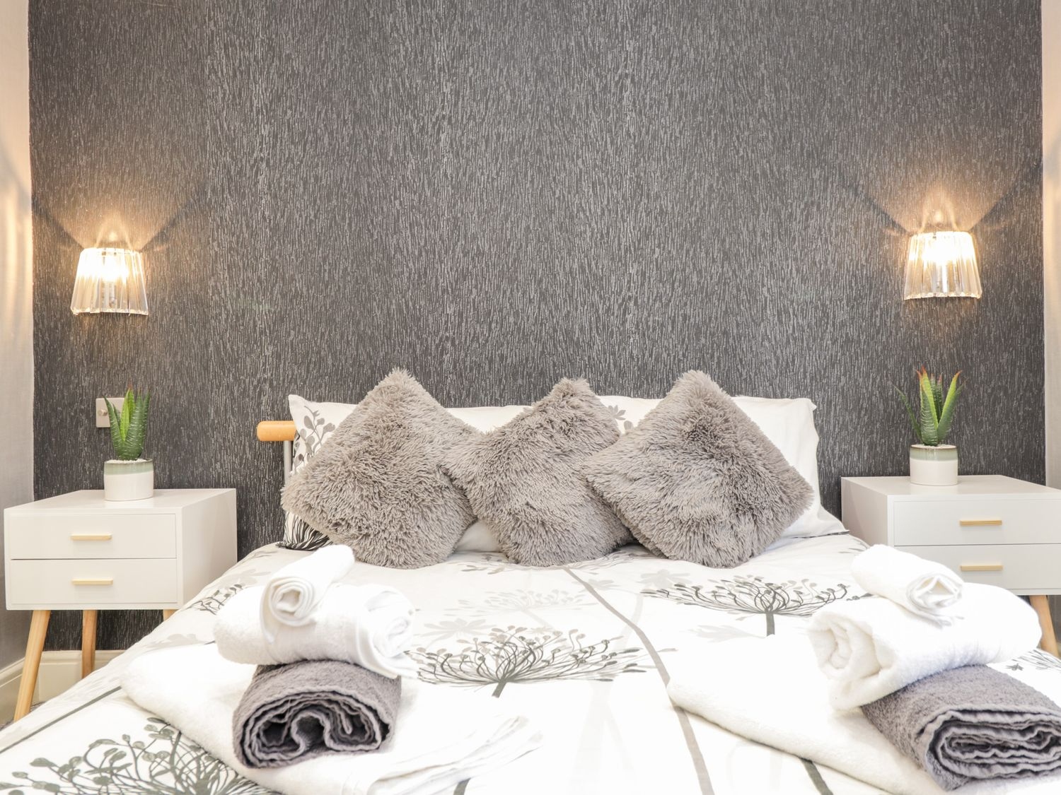 Enter into the sleek, monochrome kitchen area of the open-plan living space and admire the good range of appliances on offer, including an electric oven and gas hob, microwave and fridge/freezer, sure to be of assistance on your self-catered stay.